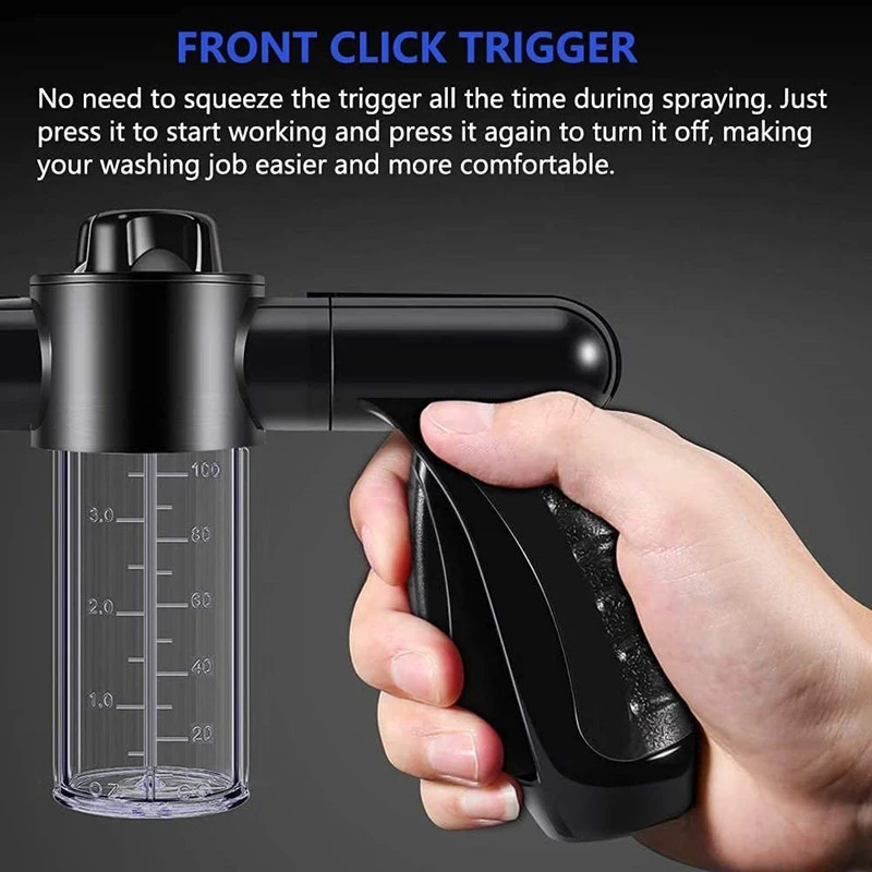 Click the handle to turn the water on/off. The Pup Jet creates an effective soap mix as it sprays, so you'll get the job done in a snap.